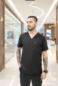 Оптимізуйте свій робочий гардероб із нашим чоловічим медичним костюмом преміум-класу, створеним спеціально для професіоналів, які цінують комфорт, стиль і практичність.