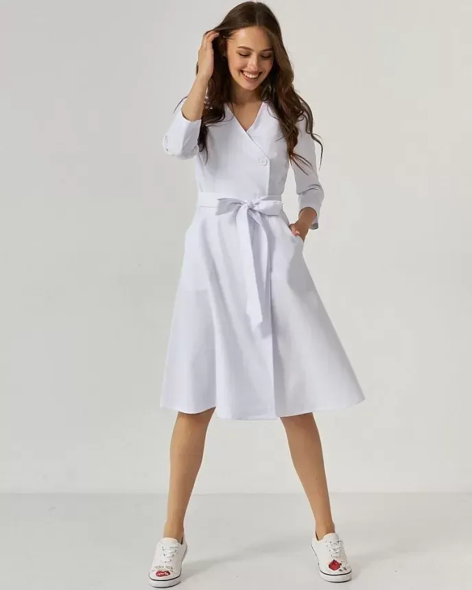 Серед інших медичних жіночих халатів Прованс виділяється своїм елегантним фасоном з довгою об'ємною спідницею. Врізна лінія талії зробить фігуру пропорційною, подовживши візуально ноги.